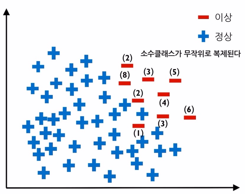 K값을 정한 후 소수 범주에서 임의의 데이터를 선택한 후