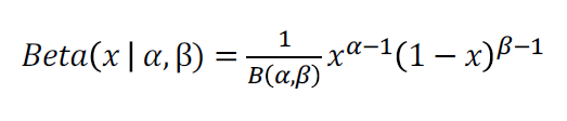 베타 분포는 두 개의 양의 변수로 표현할 수 있는 확률 분포이며 0과 1 사이의 값을 가집니다.