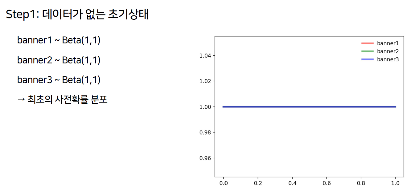 Step1은 데이터가 없는 초기 상태를 뜻하고 모든 배너의 \( \alpha \), \( \beta \)는 0입니다.