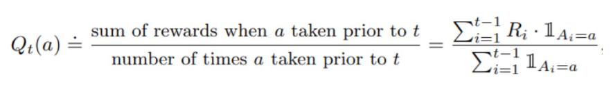 \( Q_t(a) \)는 현재까지 관측된 개별 머신의 Reward 평균값을 뜻하고 수식은 다음과 같습니다.