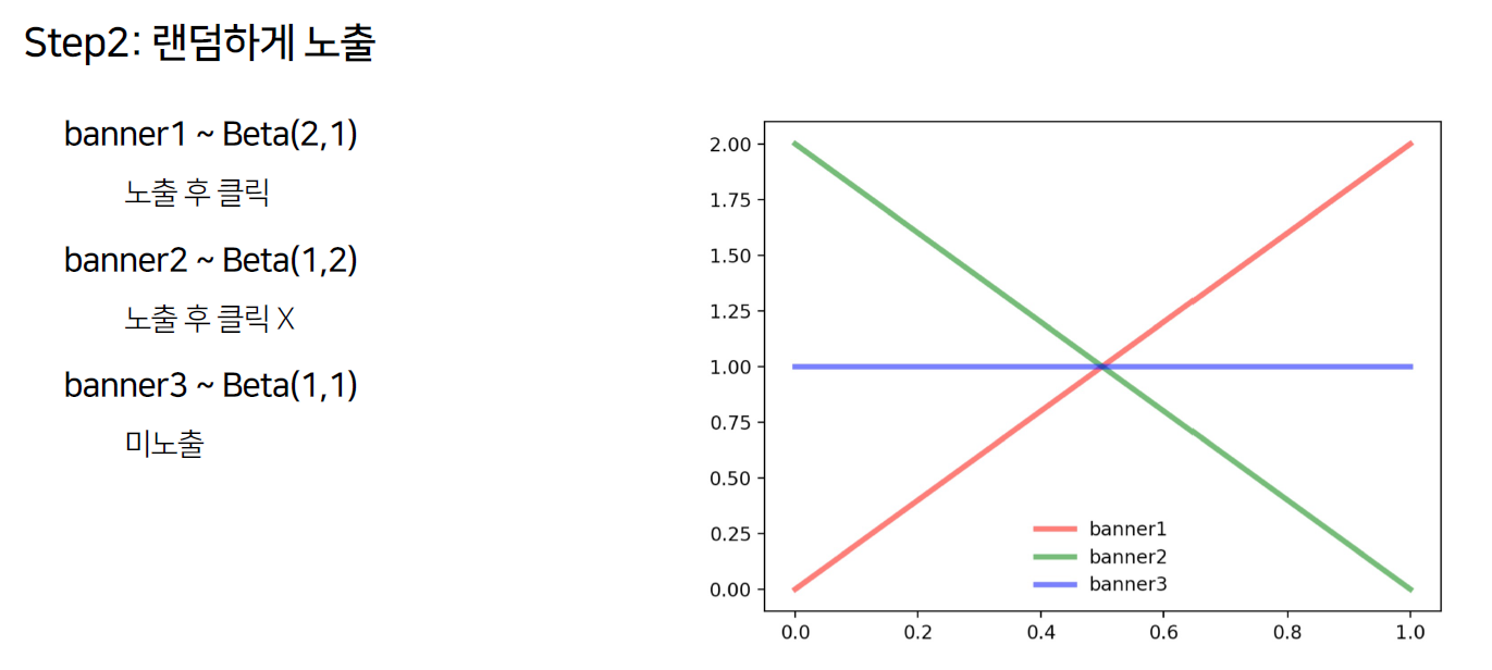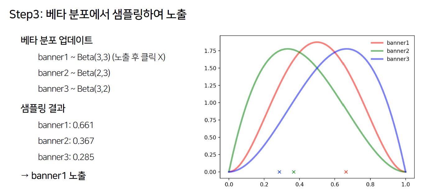 Step3에서는 베타 분포에서 샘플링하여 배너를 노출시킵니다.